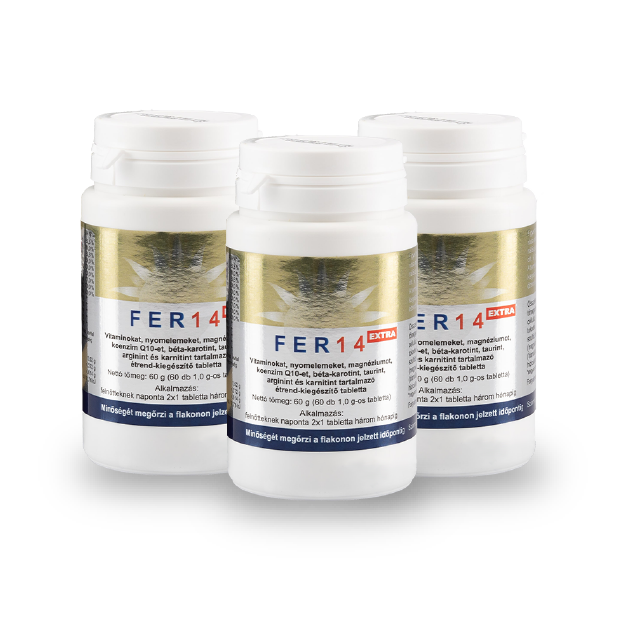Suplimentul alimentar FER14 EXTRA® conține în formă concentrată vitamine (B6, B12, C, E, D3, acid folic, β- caroten), aminoacizi (arginină, taurină), oligoelemente (zinc, seleniu) și minerale (magneziu, L-carnitină, coenzima Q10) care joacă un rol în funcționarea fiziologică a gameților masculini (a spermatozoizilor), contribuind astfel la funcționare sănătoasă a acestora. Produsul este fabricat în Ungaria, în condiții controlate și a fost conceput de specialiști maghiari în domeniul fertilităţii.